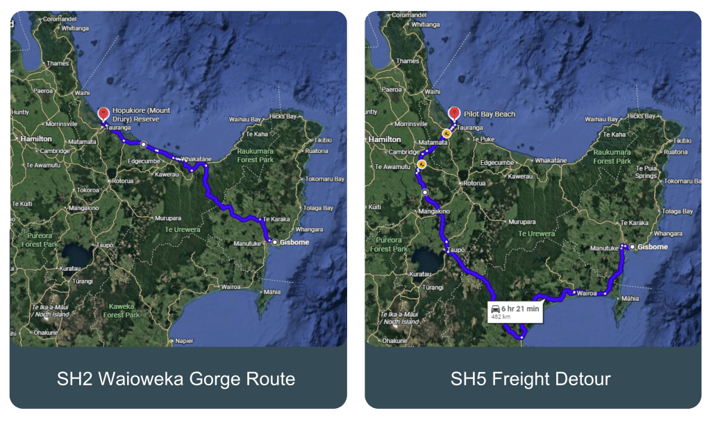 Transporting New Zealand Membership Manager Lindsay Calvi-Freeman says that the closure will add 211 kilometres and nearly three hours to a truck journey between Gisborne and Tauranga detouring on State Highway 5.