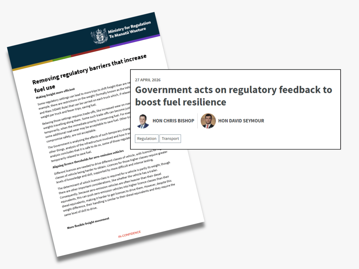 Transporting New Zealand has welcomed the Government developing options to remove regulatory barriers to improve freight productivity and minimise diesel use, saying that urgent action is required to keep the economy moving and protect jobs.