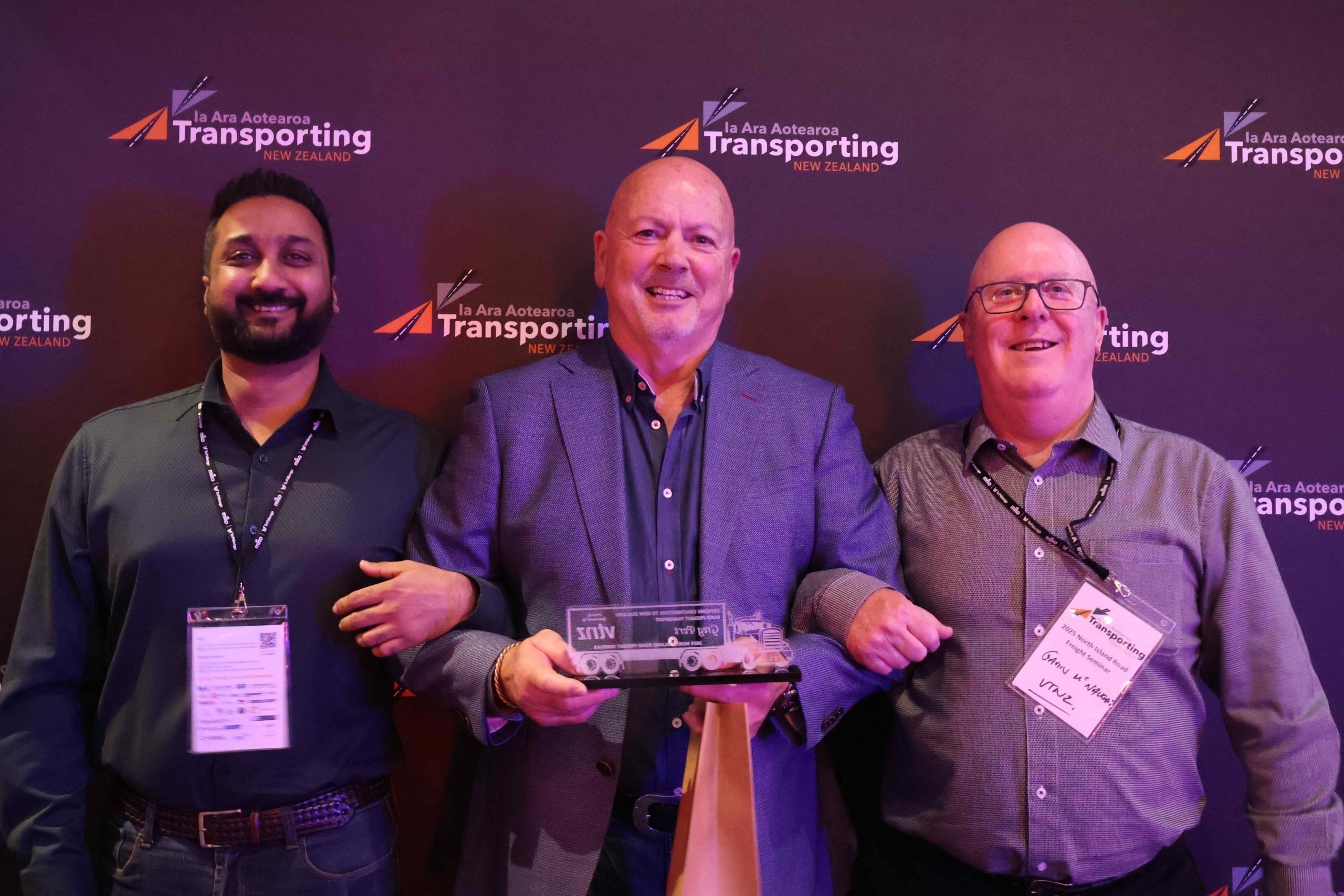 Greg Pert of Tranzliquid took home the Supreme Contribution to Road Freight Award, sponsored by VTNZ, which recognises a lifetime of service, sector leadership and impact.